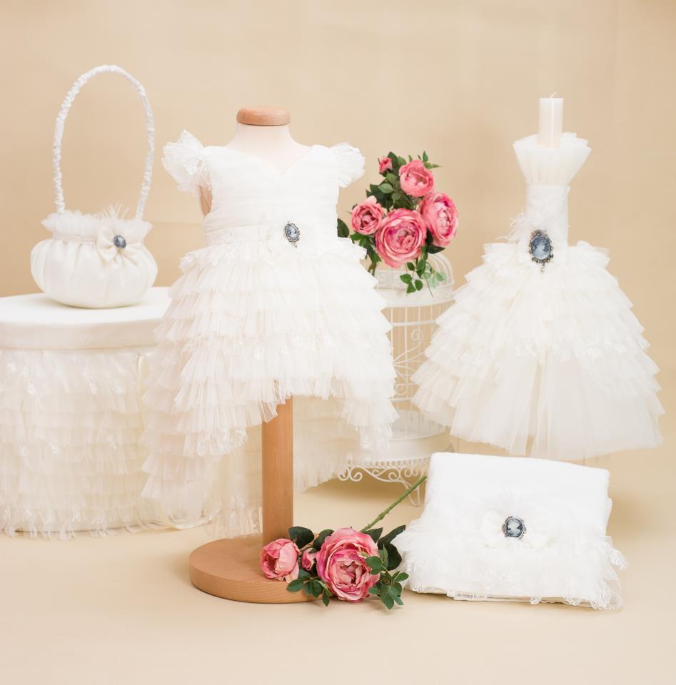 Little Amelie Natalia was gifted by her godparents, on the christening day, with an elegant trousseau matched with the “Pink Aquarela” dress , all masterfully painted by the graphic illustrator Alexandra Mudrac and expertly tailored by the Petite Coco team.