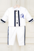 Delicate ivory cloth suit with macrame details. The suit can be ordered without the shirt.