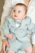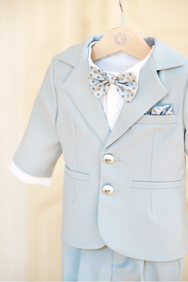 A light suit, made of delicate fabric, in a pleasant shade of grenn. The shorts are ideal for summer days, and the jacket will protect the little one from the coolness of the evening. The silk details and the buttons with crowns add elegance to the suit.