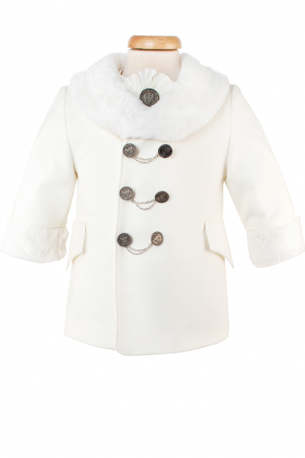Tzarevici - Ivory overcoat adorned with ecological fur collar and metalic accesories