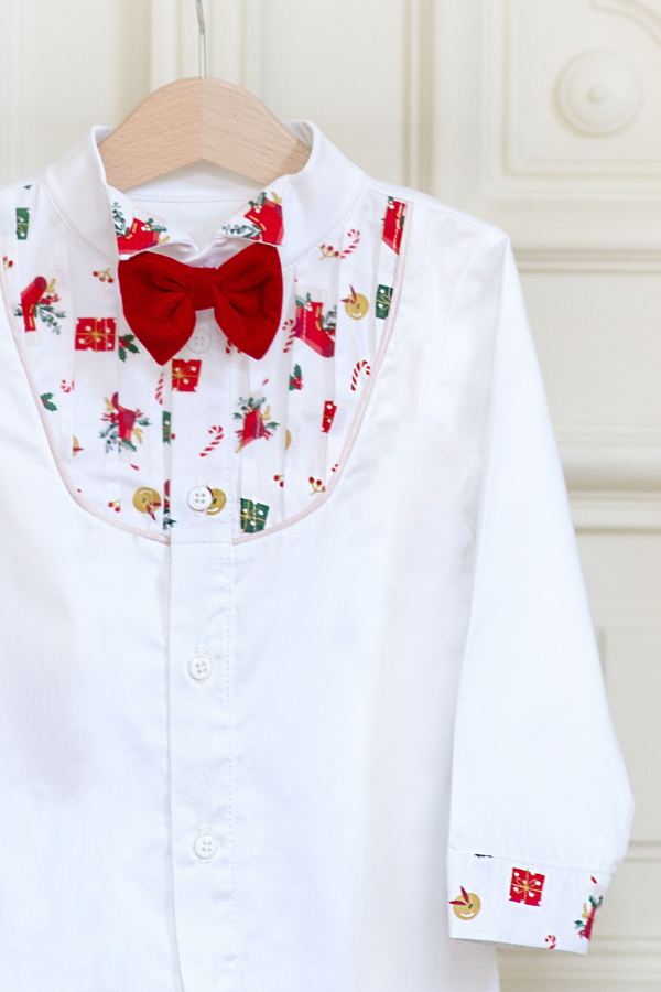 Costume components: shirt with body (for 0-1 year sizes) and bow tie, short pants.