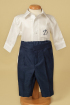 For an unforgettable party, a suited suit is needed, "Sir Bryce" has a special design, made of fine cloth and navy blue velvet details. To add more personality to the model we added on the precious cotton shirt the little one's initial.