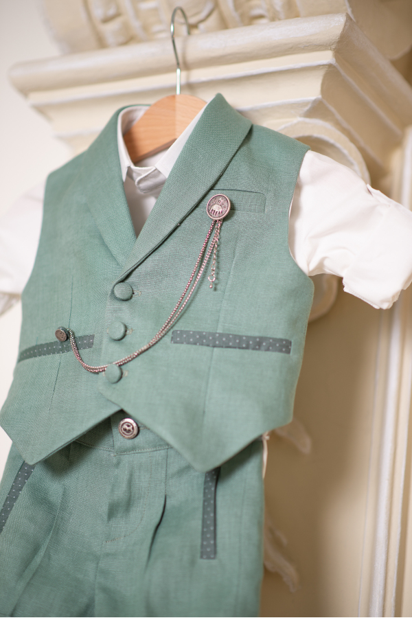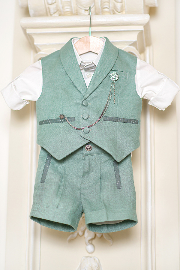 Summer Time - elegant linen waistcoat suit for boys, on a beautiful minty shade