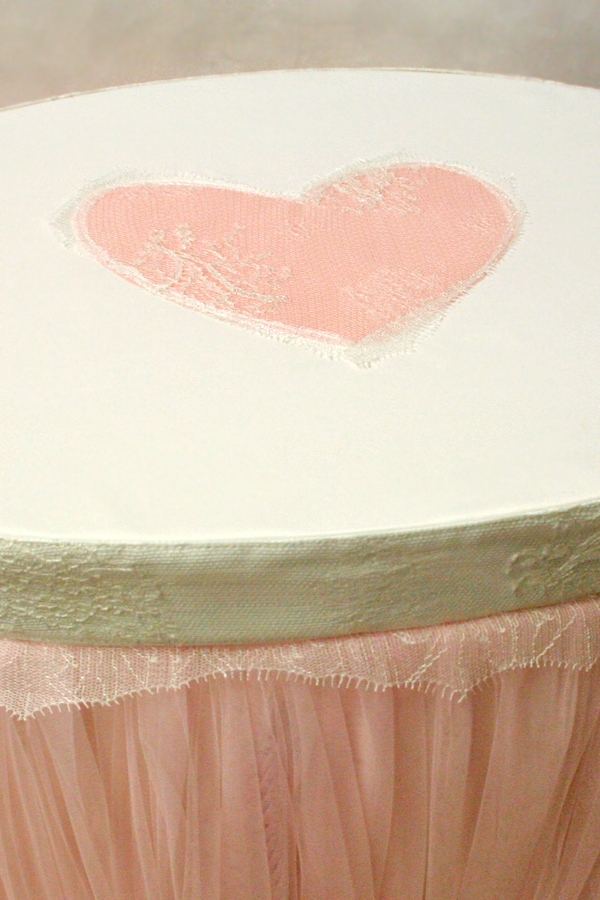 Christening trousseau box, decorated with tulle and elegant lace and fine tul.