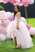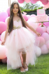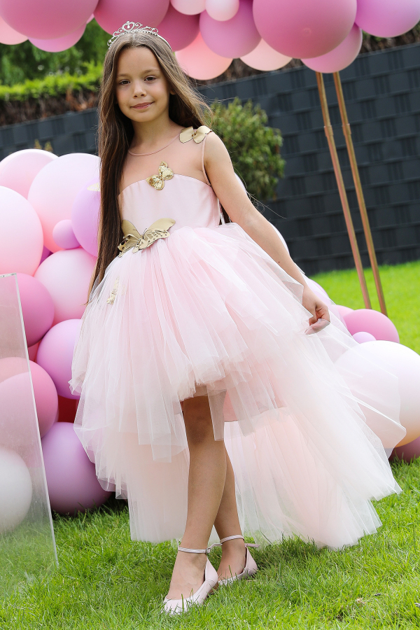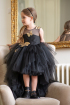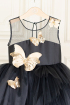 Black tutu dress for girls, with asymmetrical tulle ruffles and transparent shoulders, decorated with shiny golden butterflies. A model that will surely attract all eyes at all the parties your little girl will attend;) The "Special Moments" Collection.