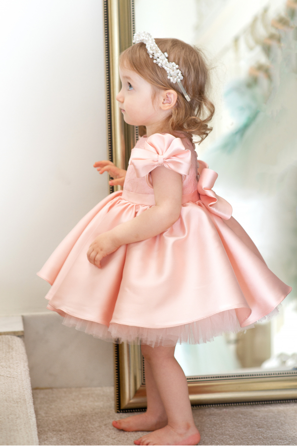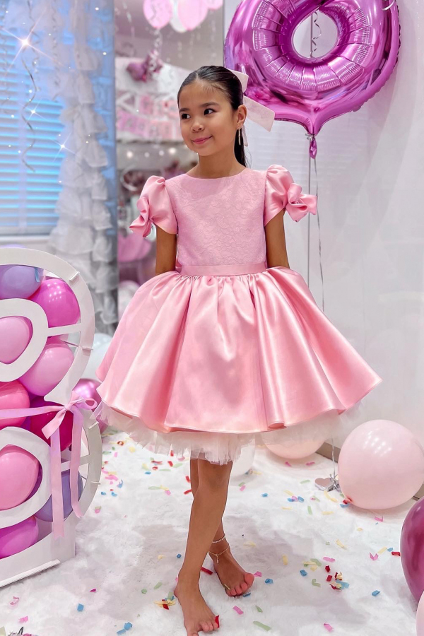 Cupcake - Pink taffeta dress with lace and oversized bow