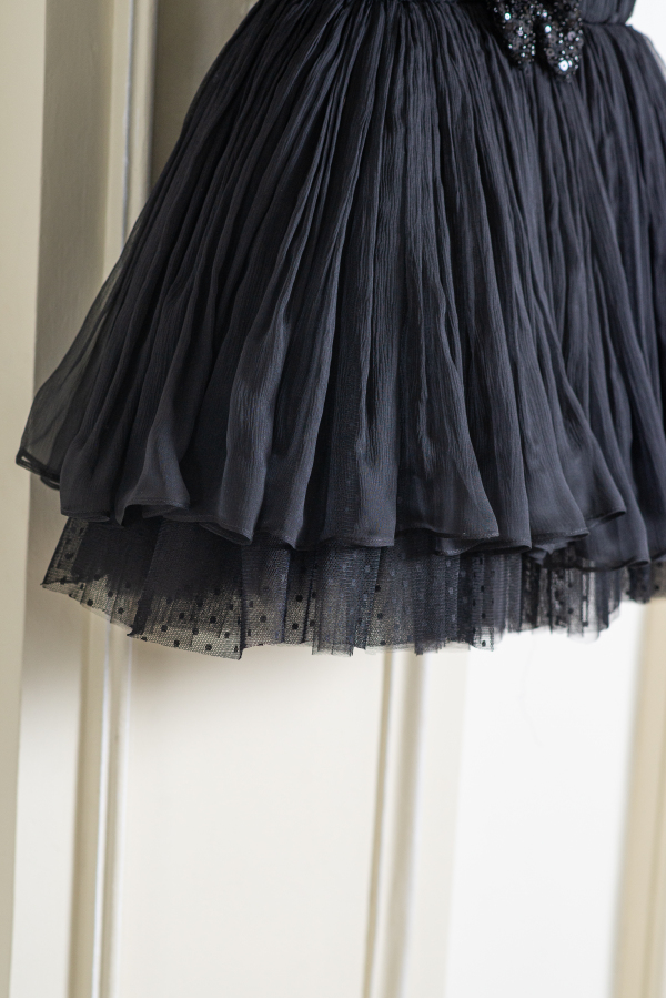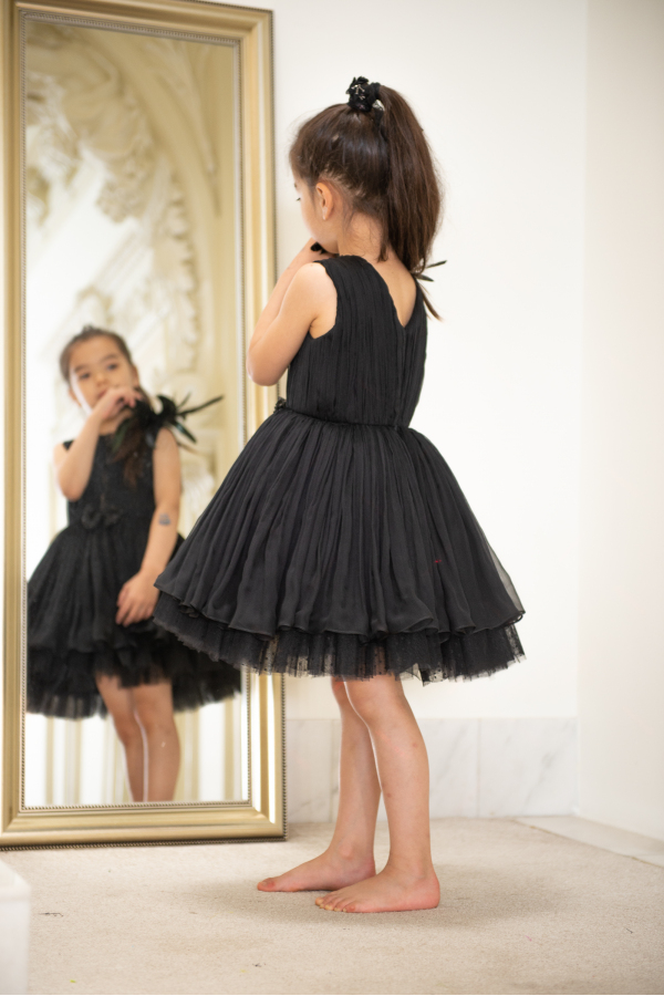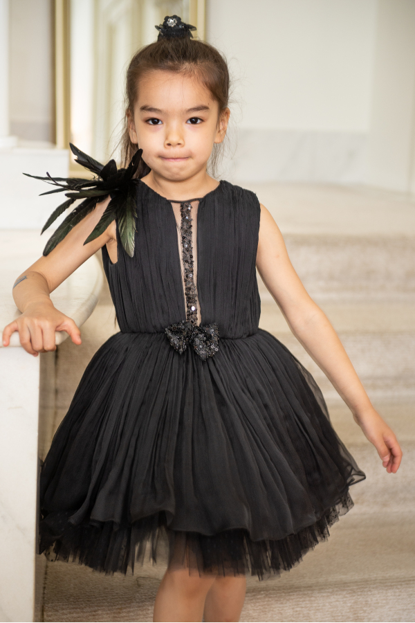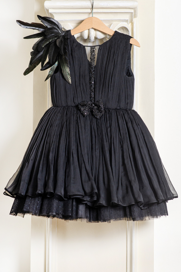 Let's Party! - silk chiffon, sequin and feathers black dress for children