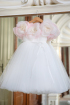 This esquisite dress is made from endless layers of tulle in a beautiful shade of off-white, a true garden of beauty, with a soft and airy texture. The delicate hand crafted off-white and soft pink flowers ad a touch of freshness to the design.