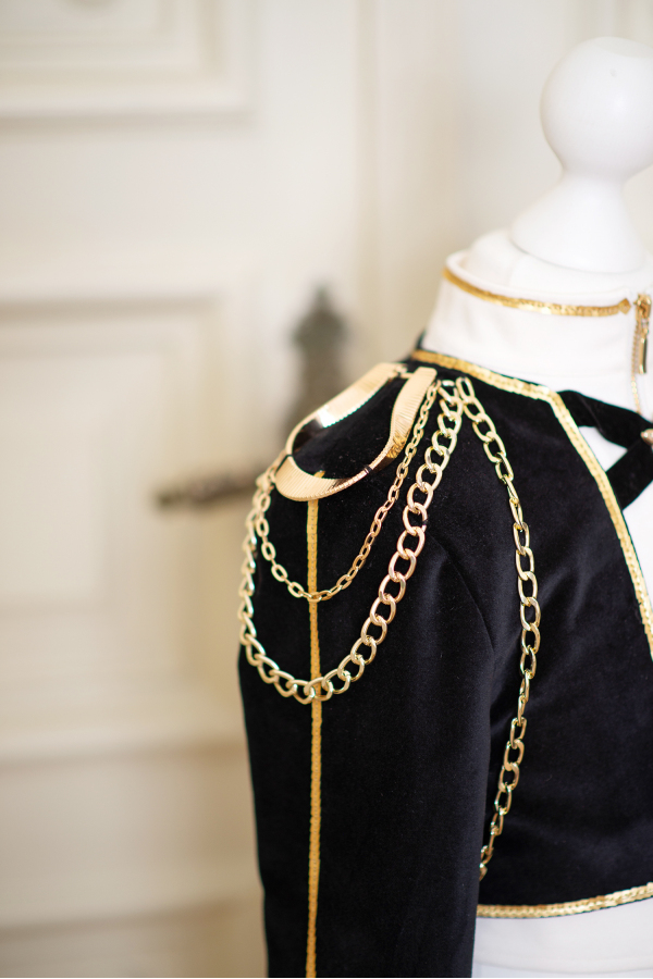 Rumi, Cute Thematic Suit for little Girls, inspired by the same name popular animation. The velvet coat and metal details is giving this suit a very chic military style. We would say that this design would make a great gift for your little one :)