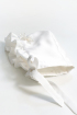 Elegant bonnet crafted from mikado taffeta, adorned with exquisite gems for a touch of sophistication.