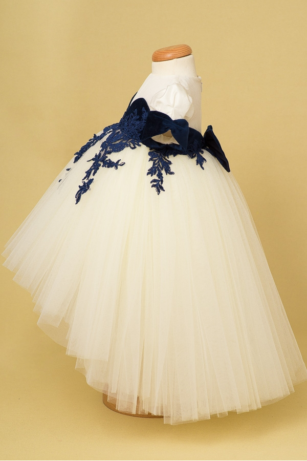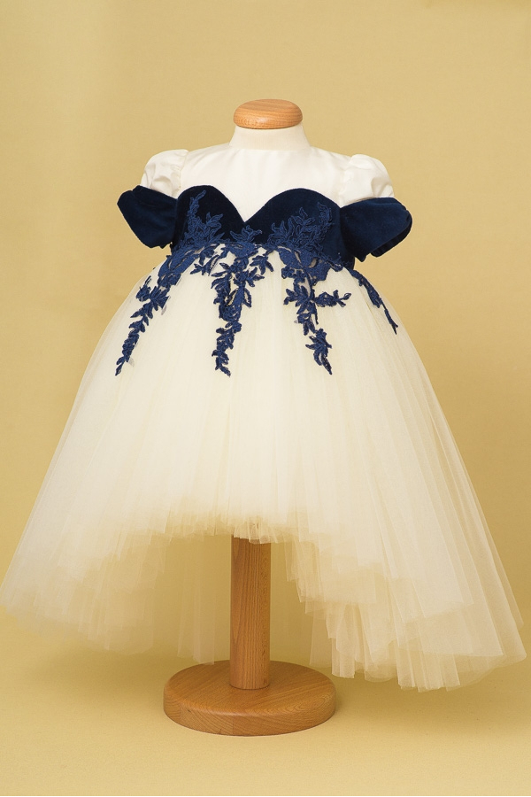 The Little Fairy embarks on a new adventure in the magical kingdom of Sapphire, with the help of her magical dress made from silk taffeta and manually applied lace. "Winter Tales" Collection.
