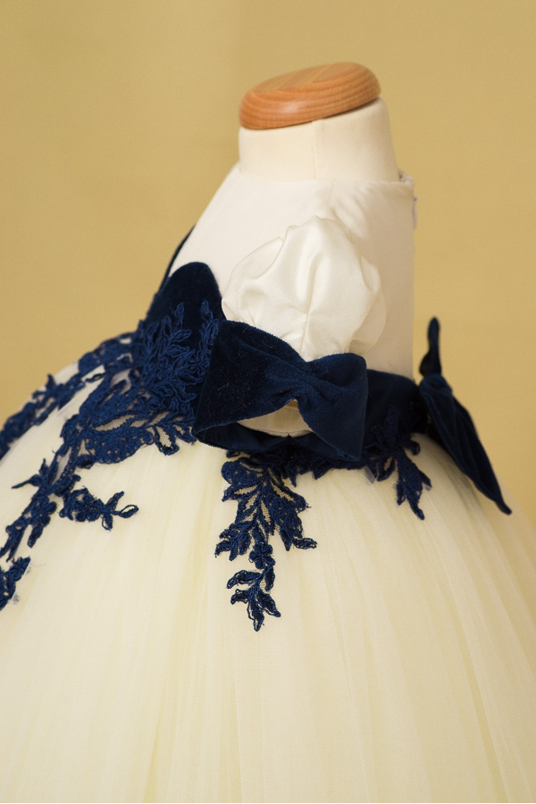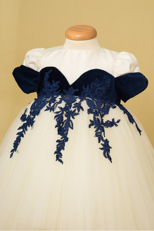 Blue Sapphire - 6&9 months sizes - Baby Girl Dress with trail and lace OUTLET
