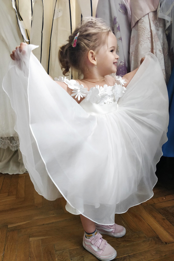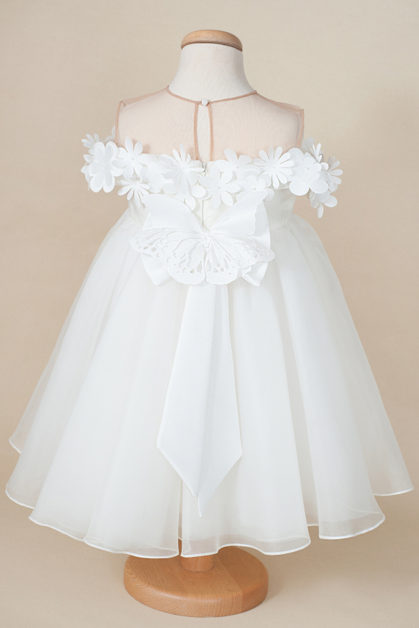 Silk organza and 3D flowers and butterflies decorations on a special occasion dress, just right for a little flower girl and not only. "Silk butterflies" Collection.