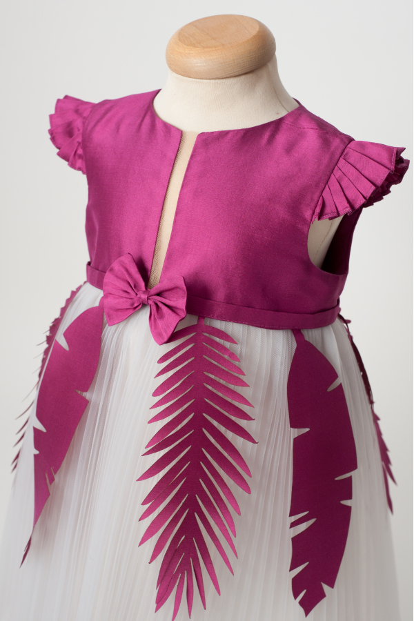 Paradise - 6 Months - Spectacular dress decorated with delicate silk shantung leaves