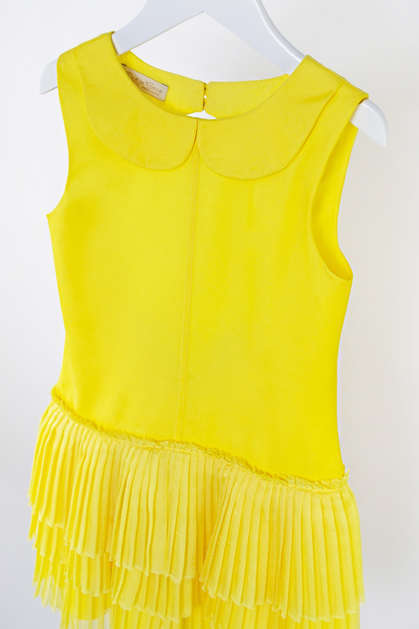 Sunny yellow summer dress for girls, with a pleated skirt and a nice cut on the back. "Fashion Kids" by Adela Diconu Collection.