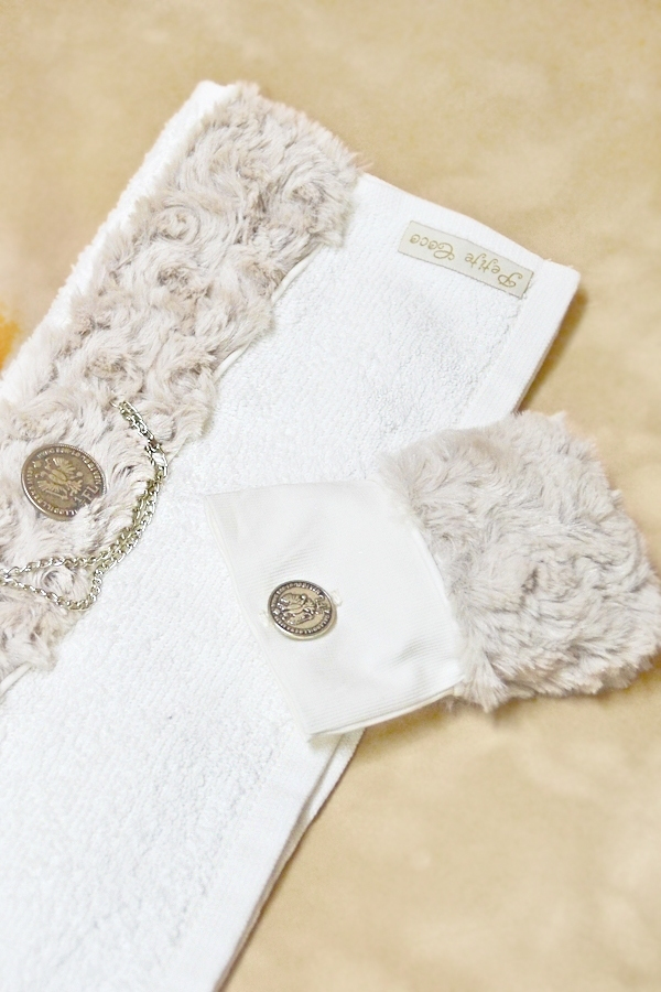 Set components: priest towel and soap, chrism (myrrh) bottle. The towel can be embroidered with the baby's name.