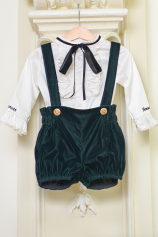 Această rochie fermecătoare din catifea de bumbac verde închis pentru fete emană eleganță, detaliul delicat ivoire de la guler, contrastând frumos cu verdele inchis. Mânecile umflate adaugă rafinament, în timp ce fundita delicata neagră completează tinuta. Perfectă pentru ocazii speciale, această rochie îmbină stilul clasic cu farmecul etern.