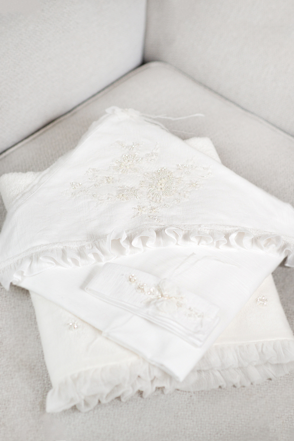 Set de botez, compus din prosop mare, panza de mir netivita si fasa.