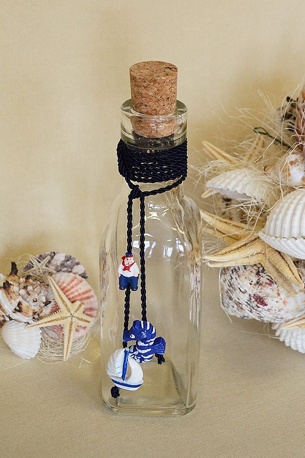 Sticluta pentru mir ideala pentru un botez cu tema marina, decorata cu elemente de ceramica. Decoratiunile pot varia in functie de disponibilitate.