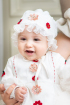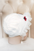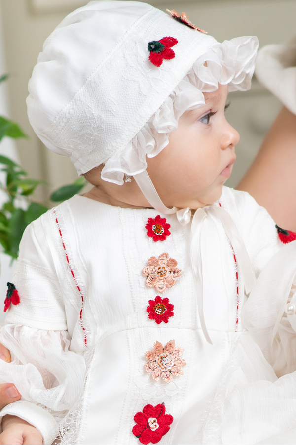 The Garden of Flowers - Boneta botez fetite ivoire cu volanase si floricele, din voal de matase +