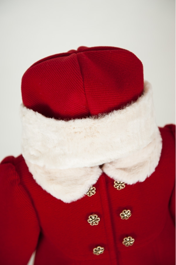 Caciulita din stofa cu garnitura de blanita ecologica "Natalie", asortata la paltonasul cu acelasi nume din colectia "Christmas Stories".