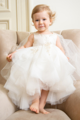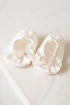 Drops of Gold - Balerini pentru botez fetite din matase imprimata, decorati cu perlute