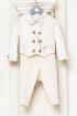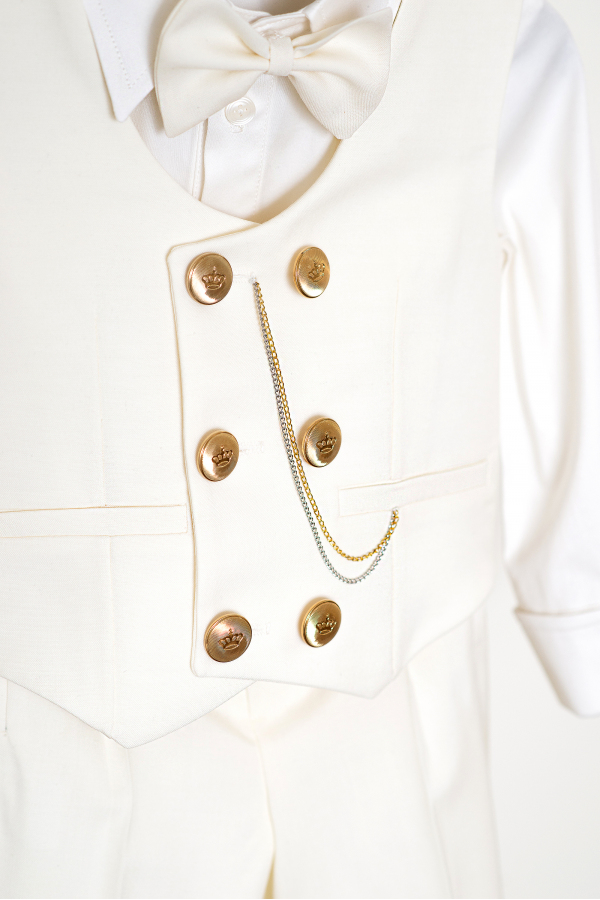 White Gordon - Costum baieti elegant clasic ivoire, cu vesta si detalii chic aurii