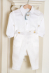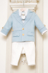 Piese: pantaloni, camasa cu body atasat (pentru varsta 0 - 1 an) si sacou.