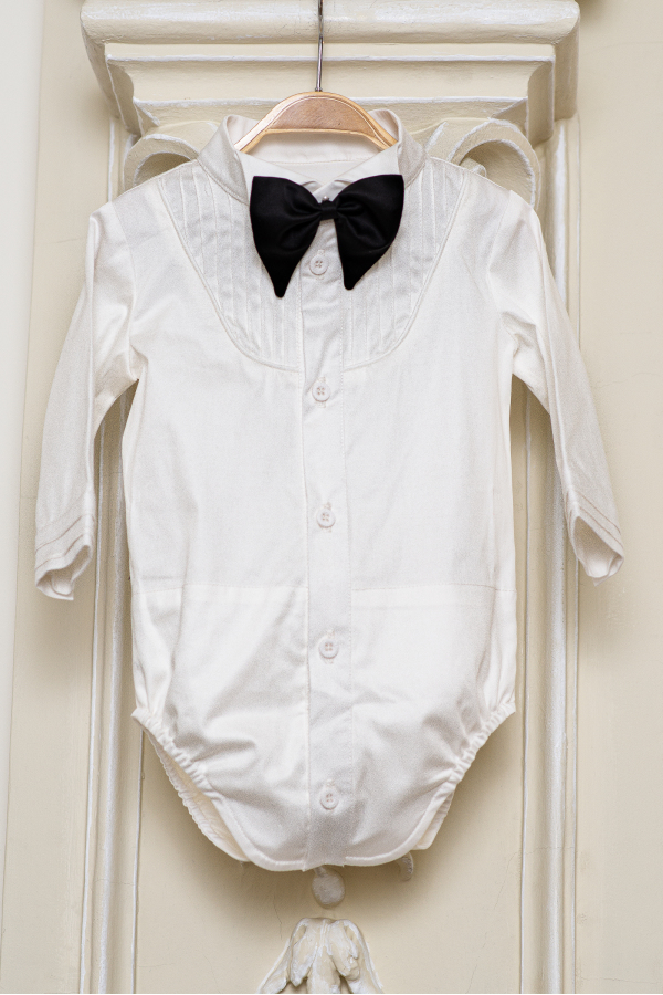Piese: pantaloni, camasa cu body atasat (pentru varsta 0 - 1 an) si sacou.