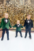 Un sacou elegant din catifea într-o nuanta frumoasa de verde inchis, asortat cu o pereche eleganta de pantaloni negri. Detaliul stralucitor de pe rever ofera costumului un plus de glamour. Un model perfect pentru sarbatorile de iarna!
