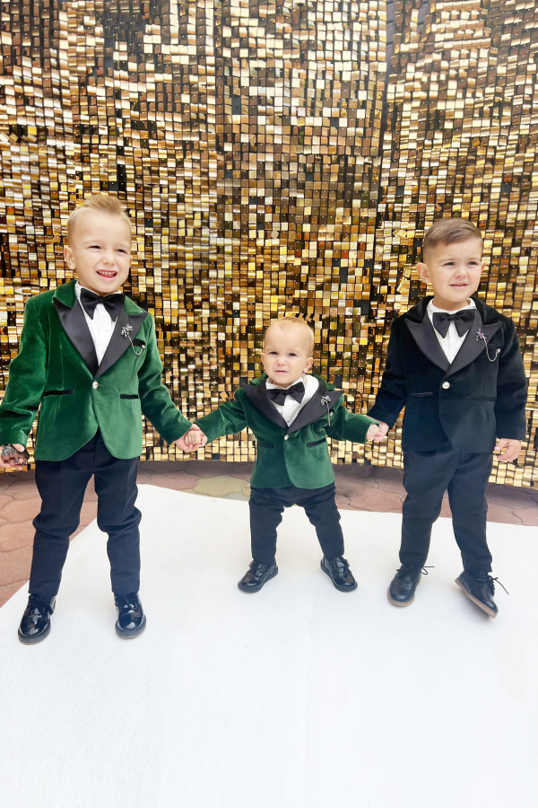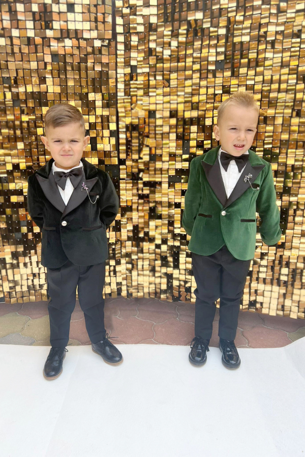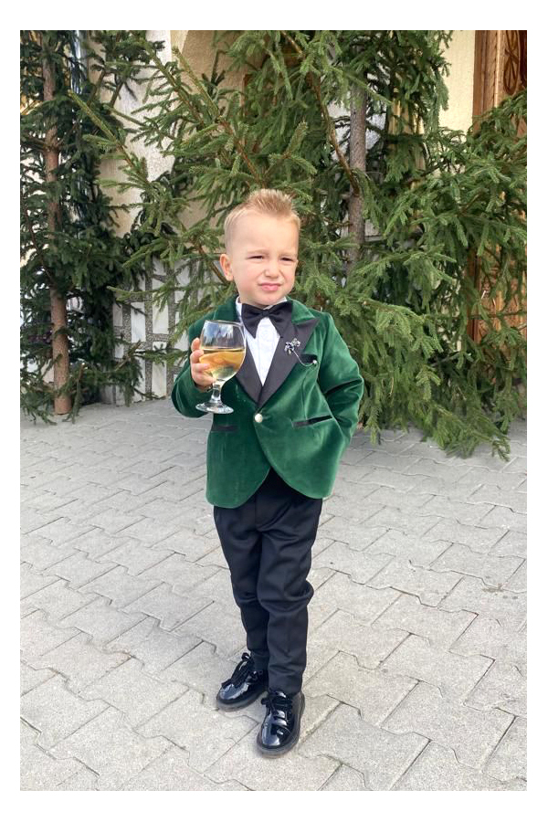 Emerald Shine - Costum elegant pentru baieti cu sacou din catifea