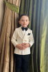 Prince Charming - Costum baieti elegant clasic, cu sacou alb/ivoire si detalii aurii
