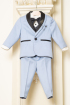 Piese: pantaloni, camasa cu body atasat (pentru varsta 0 - 1 an) si sacou.