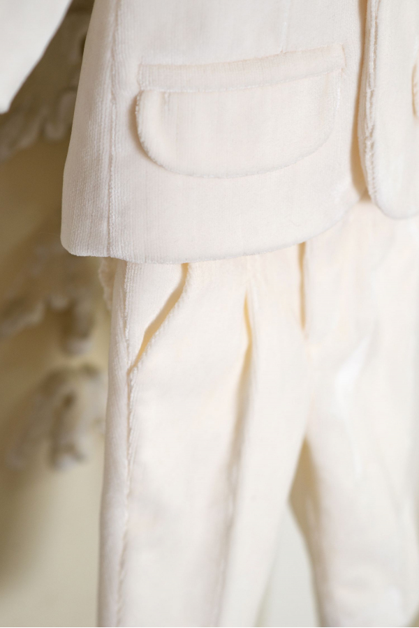Frosty - Costum pentru baieti din catifea groasa ivoire, cu personalizare