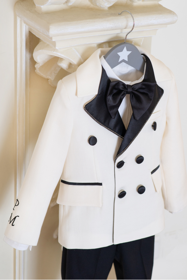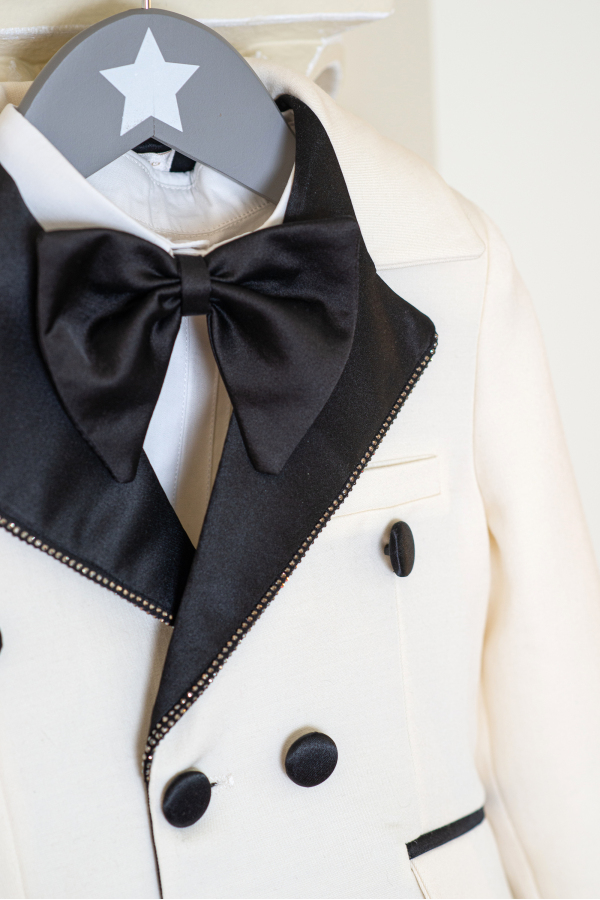Glamourous Style - Costum elegant pentru baieti ivoire- negru si strasuri