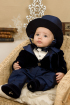 ...un costum de gentleman, cu redingota, intr-o combinatie de ivoire si mult indragitul bleumarin, o culoare atat de potrivita pentru baietii, care mai tarziu vor deveni adevarati barbati.