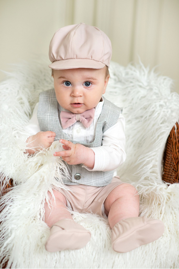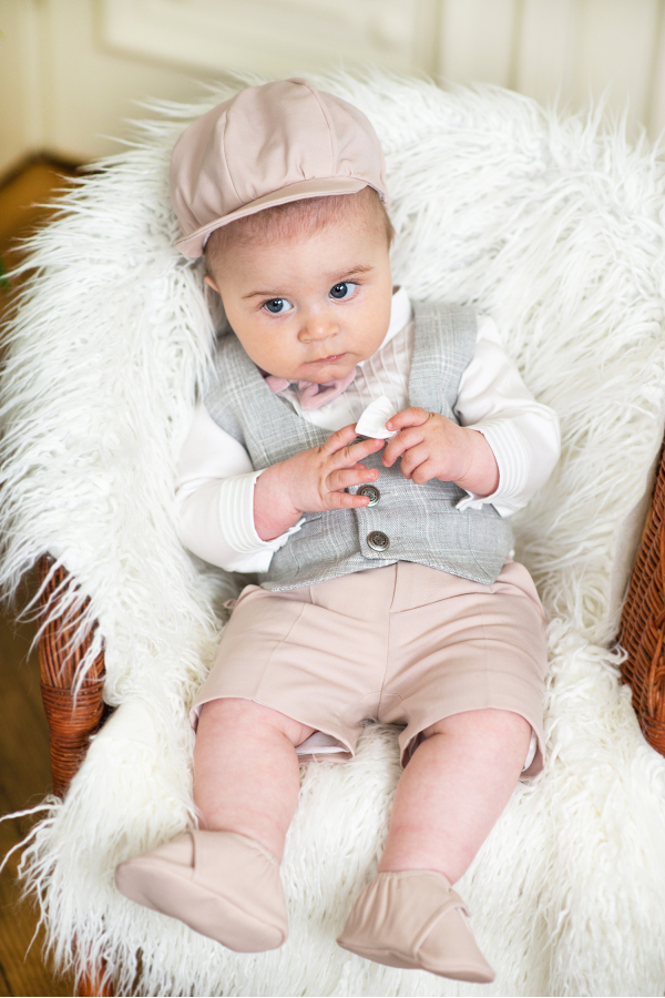 Vintage Chic - 3 & 6 Luni - costum elegant pentru baieti, cu vesta si pantalon scurt