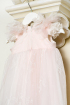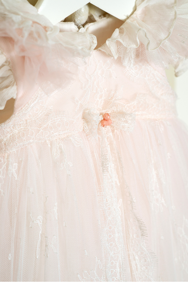 Rochie de botez catolică pentru fetițe, realizată din cea mai fină dantelă, Chantilly, aplicată peste straturi de tul moale. Pe umeri rochita are volane delicate din voal de matase, tul si dantela. Nuanta dulce de roz, face din aceasta rochie tinuta perfecta pentru bebelusul tau mic.