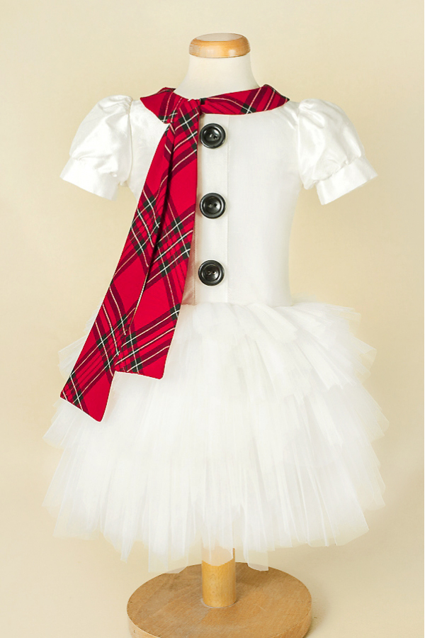 Nu exista iarna fara un Om de zapada, cu acest model inedit de rochita veti avea permanent magia sarbatorilor aproape. Combinatia dintre delicatetea shantungului de matase, veselia unui tutu din volane inegale si elementul inedit, un guler prelungit in esarfa, face din aceast model o alegere perfecta pentru orice petrecere.