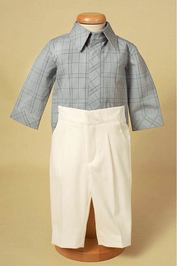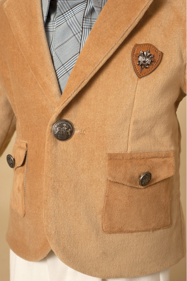 Piese: camasa cu body atasat (pentru varsta 0-1 an), sacou si pantalon cu elastic reglabil in talie;
