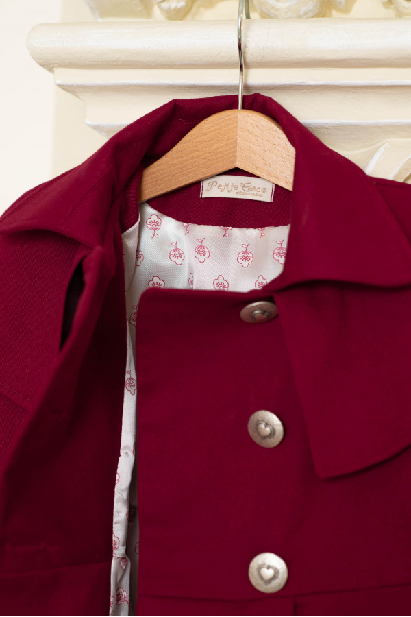 Trenci lejer pentru fete, confectionat intr-un stil elegant, din stofa de bumbac grena cu nasturi metalici argintii.