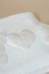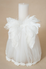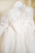 Rochie eleganta pentru bebe si fetite mai mari, potrivita pentru botez, zile de nastere, domnisoare de onoare si alte ocazii speciale, decorata cu o pereche de frumoase aripi de ingeras detasabile, lucrate manual din pene. Rochita are culoarea ivoire si este realizata din organza de matase naturala printata cu motive dantelate florale.