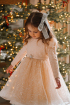 O minunata rochie stralucitoare pentru fete, din tul sclipitor si decorata cu o fundita supradimensionata. Un design perfect pentru o mică prințesă. In acelasi timp o rochita perfecta pentru serbarile de iarna de la gradinita si scoala, precum si pentru sedintele foto si petrecerile de Craciun.