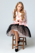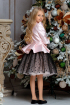 O tinuta deosebita, formata dintr-un sacou elegant din tafta roz pal si o fusta tutu negra cu stelute. Sacou este decorat cu o floare delicata si strasuri. O tinuta versatila si neasteptata!