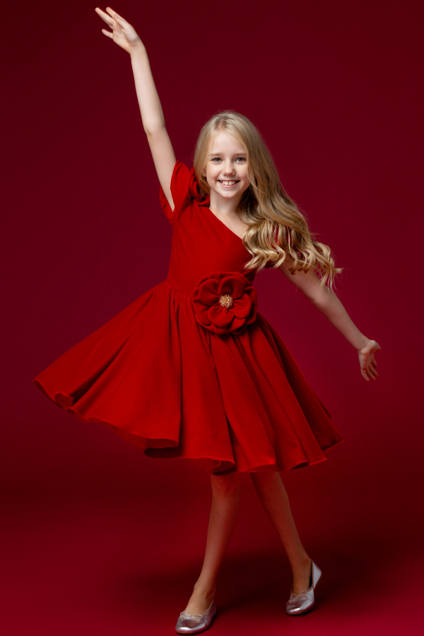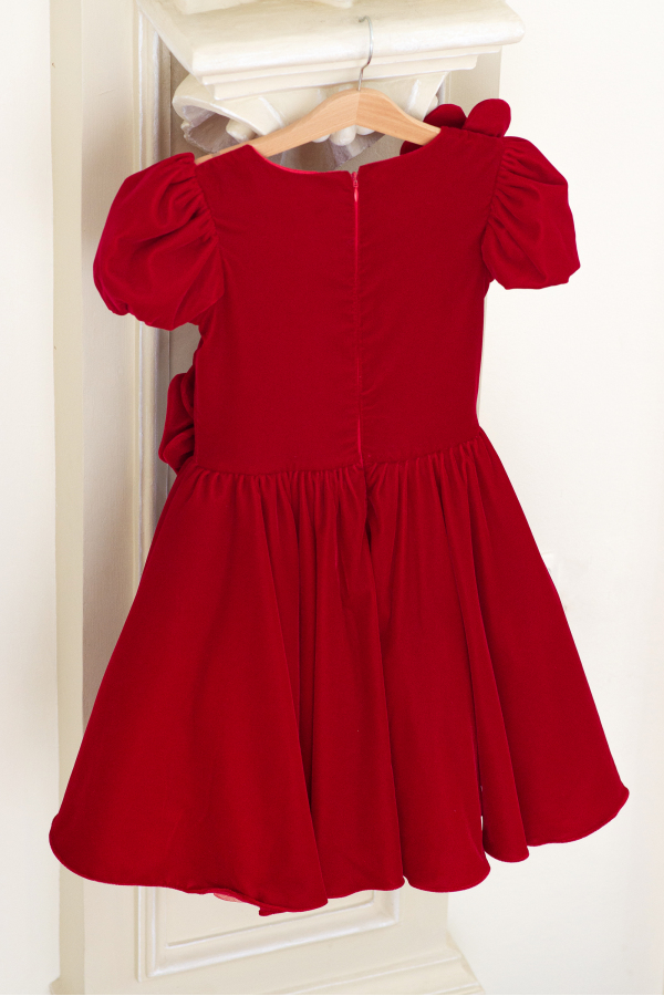 Rochie pentru fete, realizata din catifea moale si matasoasa de relon, decorata cu flori delicate si strasuri aurii. Rochita este minunata atat pentru sarbatorile de iarna, cat si pentru alte evenimente, avand o gama larga de culori disponibile. Un model care poate fi usor purtat si casual,, Acest model este un cadou elegant pentru o mica fashionista.