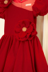 Elegant Poppy - Rochie din catifea rosie matasoasa, decorata cu flori supradimensionate si strasuri aurii +