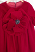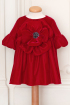 Petite Elegant Poppy - Rochie din catifea rosie matasoasa, decorata cu o floare si strasuri negre