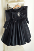 Bows and Pearls - Rochie eleganta din catifea cu o funda pe umeri si perle