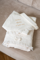 Clara - Rochie delicata din dantela cu flori, perle si trena detasabila