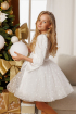 Rochita tutu pentru fete realizata din tul cu stelute sclipitoare albe si decorata cu un guleras finut si o funda mare tot alba si strasuri. Modelul este perfect pentru serbarile de iarna de la scoala si gradinita sau pentru petrecerile de Craciun si de anul nou.